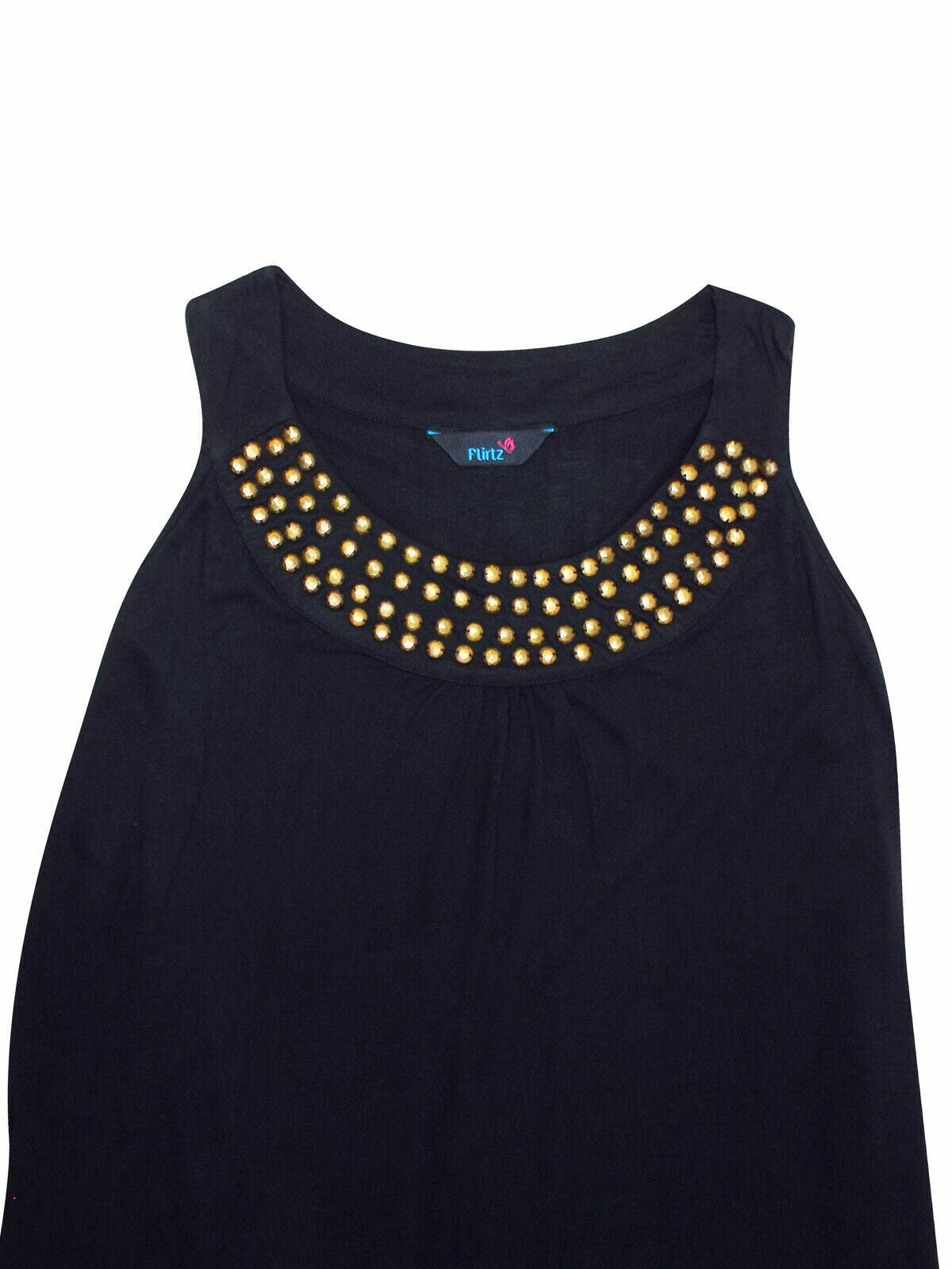 Black Cami top plus size 18/20 22/24 Sleeveless Embellished Blouse Gold stud 477