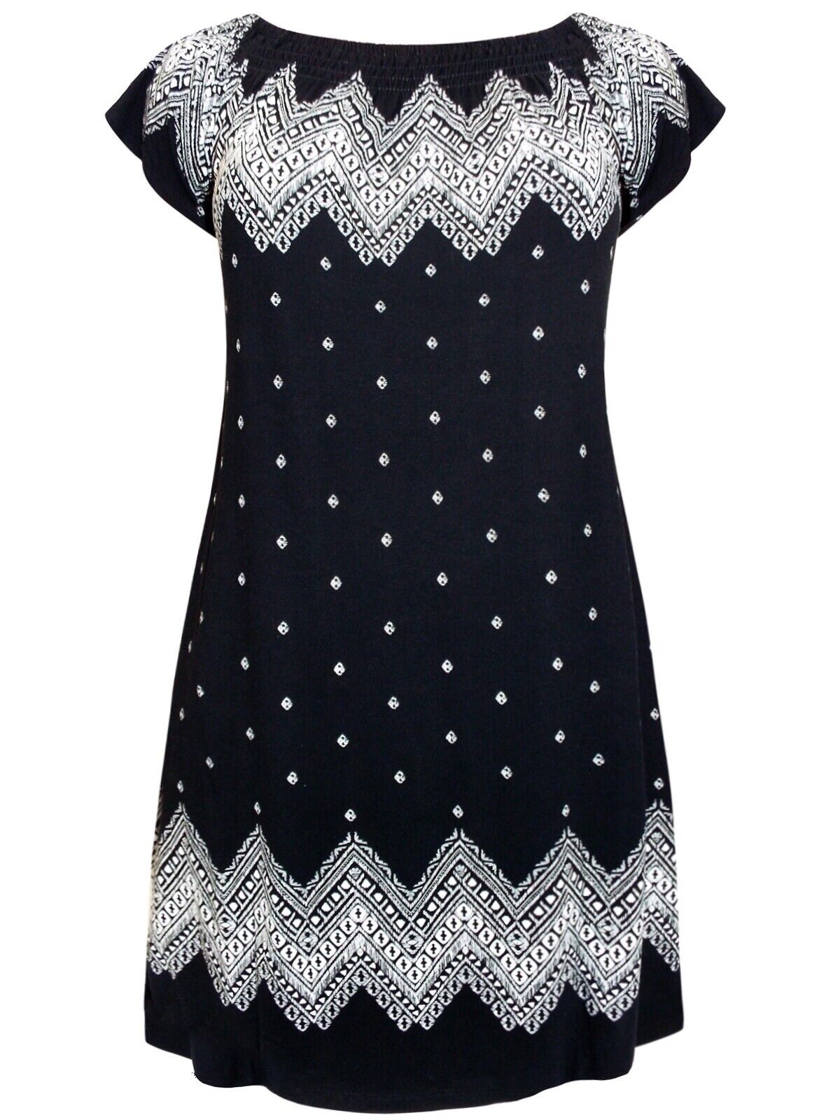 Black Jersey Dress Plus Size 18/20 22/24 26/28 30/32 Aztec White Print TUNIC 292