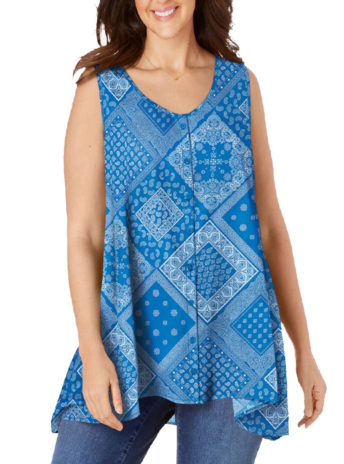 A gorgeous blouse top in a beautiful sky blue colour (also available in cerise pink)from the Woman Within USA collection well loved for their flattering styles and good sizing- guide below.