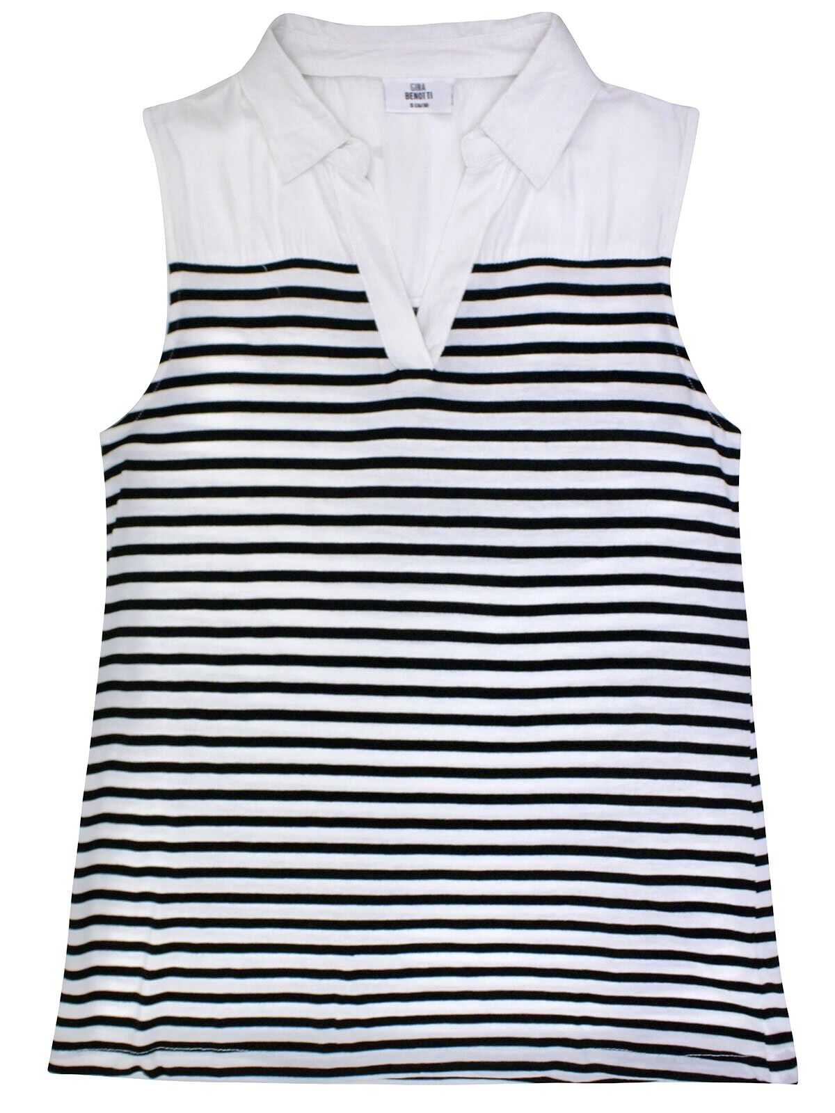 A lovely Nautical style black striped top featuring a classic collar and flattering V neckline.