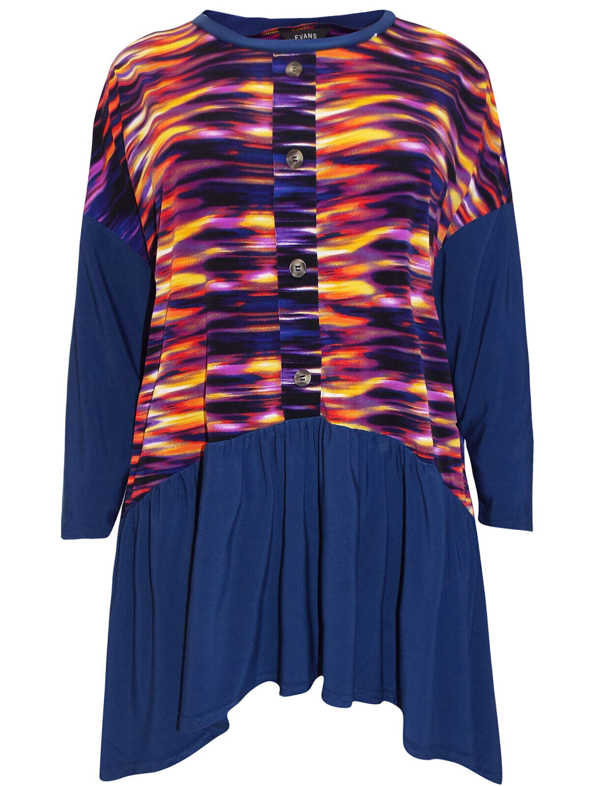 A fabulous tunic top featuring a striking waves print to the bodice and decorative (fixed) buttons to the front.