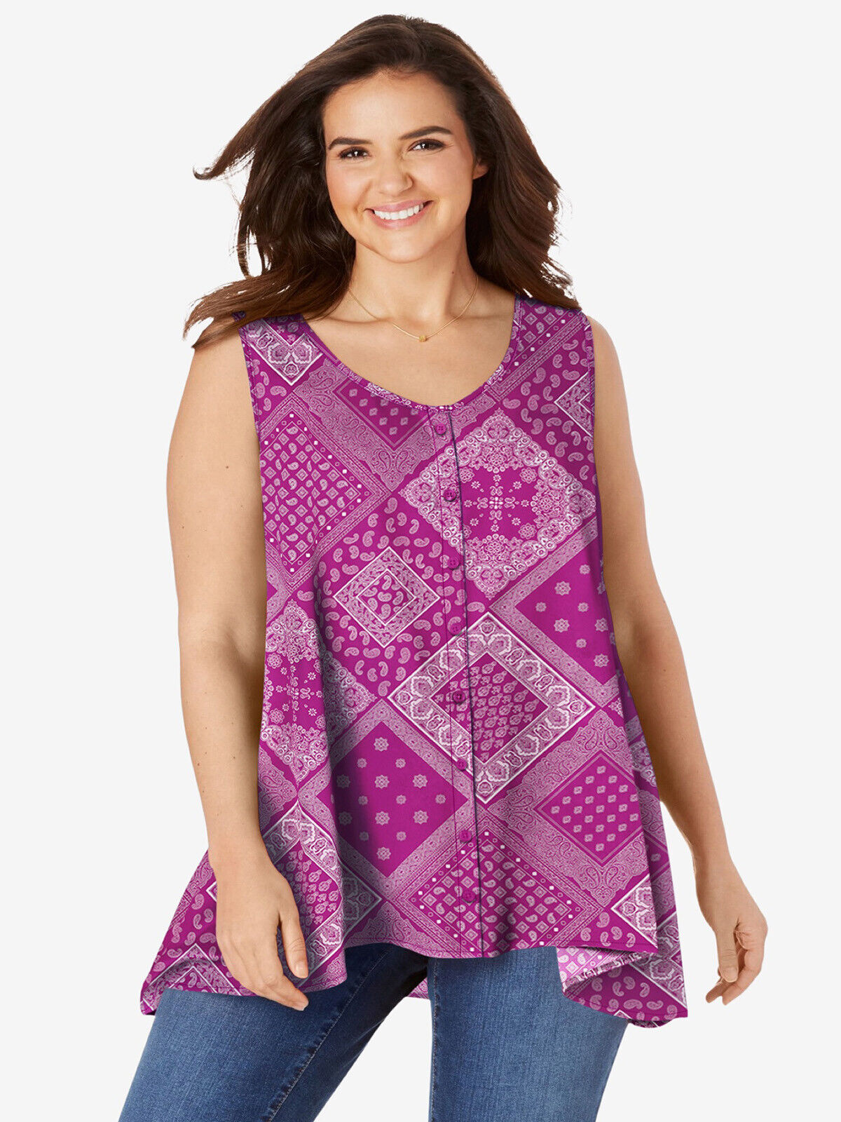 A gorgeous blouse top in a beautiful deep pink colour (also available in sky blue) from the Woman Within USA collection well loved for their flattering styles and good sizing- guide below.