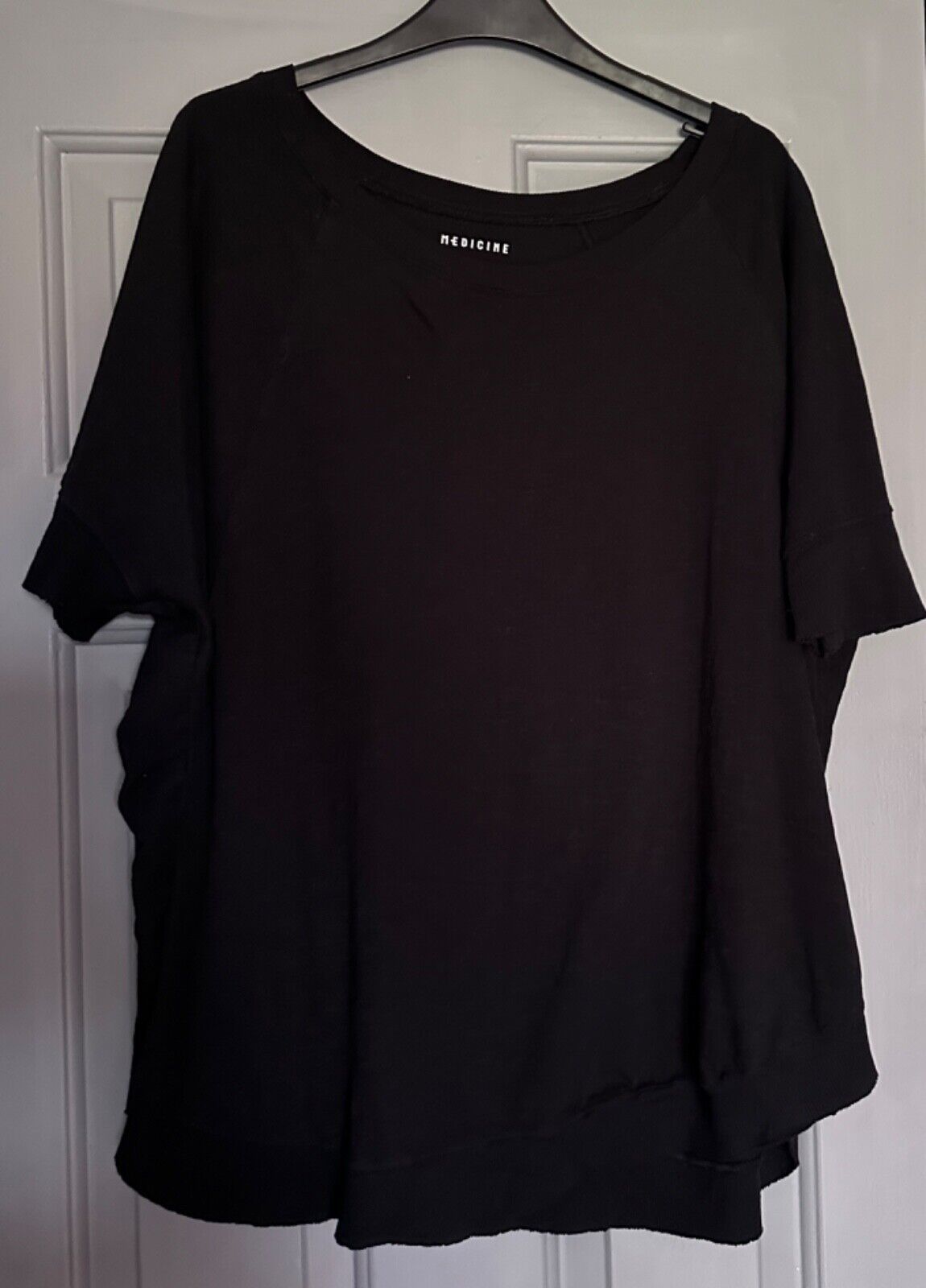 Women's Plain Black Cotton Jersey Top Plus Size 18/20 22/24 New curved hem 705