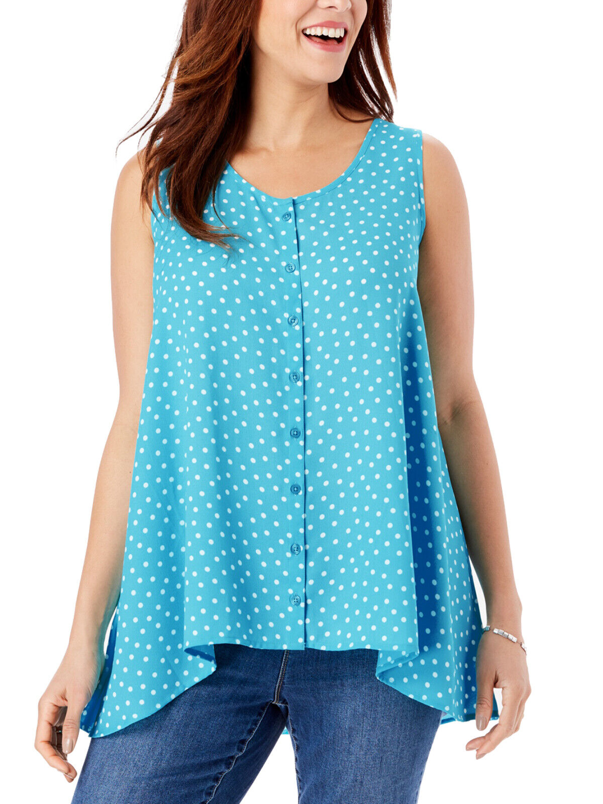 A gorgeous blouse top in a beautiful Caribbean blue colour from the Woman Within USA collection well loved for their flattering styles and good sizing- guide below.