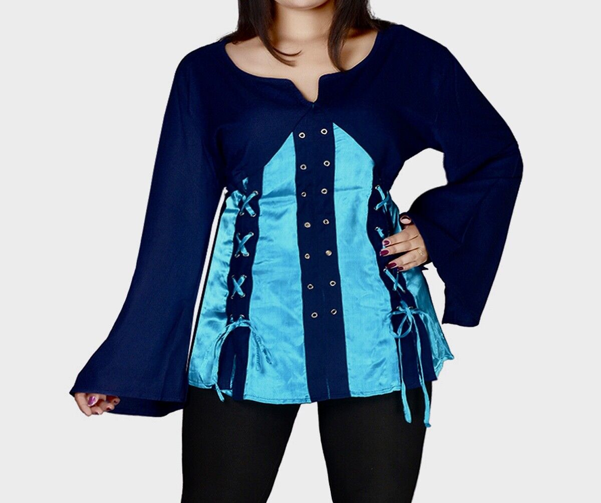 Women's Turquoise Blue Tunic Top Plus Size 26 28 30 Lace up Blouse Shirt 495